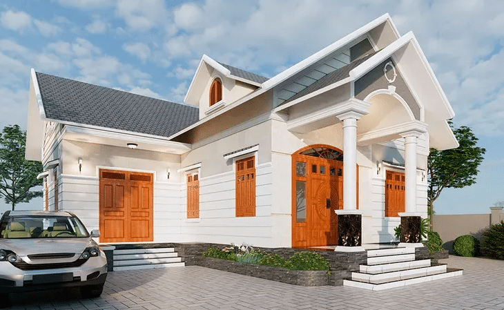 Phong cách hiện đại thu hút sự chú ý nhờ thiết kế trẻ trung, tinh tế nhưng vẫn hấp dẫn. Mẫu nhà cấp 4 này tạo ấn tượng như một biệt thự mini, mang đến sự sang trọng và yên tĩnh.