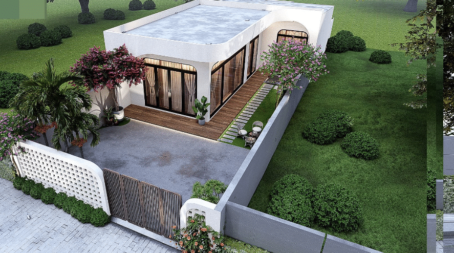 Ngoài ra, phối cảnh ngôi nhà hình chữ L luôn có thể mang lại cảm giác yên bình, thư giãn cho gia đình. Đây là không gian mà ai cũng mong muốn có được, nơi họ có thể tận hưởng cuộc sống bình dị và gần gũi với thiên nhiên.